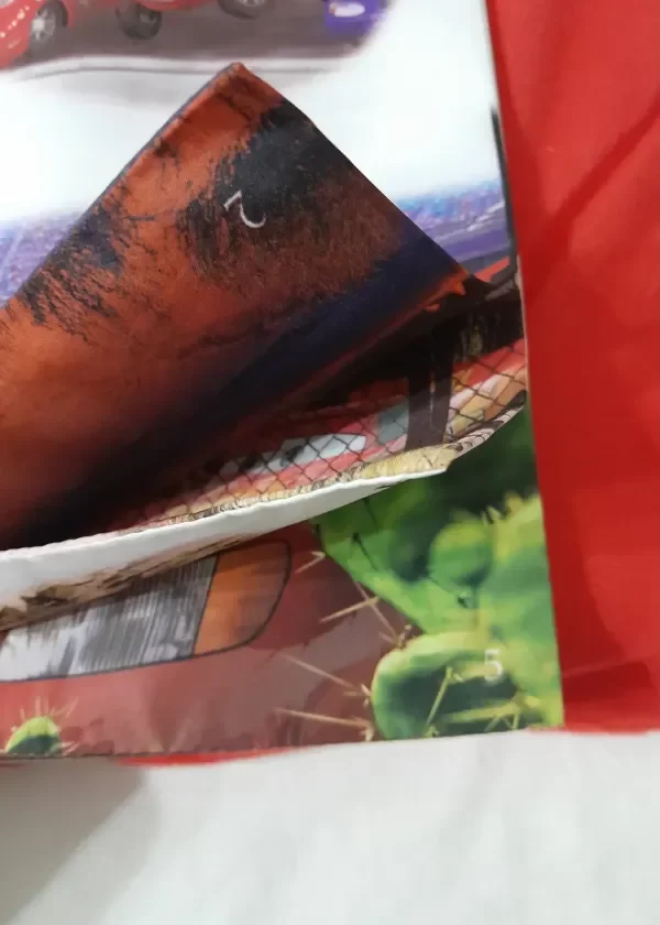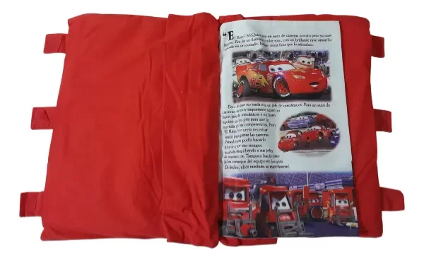 CARS ORIGINAL - LIBRO DE CUENTOS - LIBRO ALMOHADA GIGANTE DE TELA - SENARIO......un grandioso libro, perfecto para niƱos que se inician en la lectura!!, + 3 aƱos, la tela de las hojas son sedosas, 8 paginas en espaƱol a todo color, 100% poliester, en la tapa y contratapa presillas con abrojo para cerrarlo, en la tapa y contratapa estan los "sobres" con abrojos para colocar la goma espuma, medidas aproximadas: 45 x 30 cm, peso 350 grs.