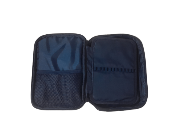 MOOVING ORIGINAL - CARTUCHERA TREND, 100% poliester, 1 piso, con cierre relampago, deslizadores del cierre de metal, 24 lapices, 1 compartimento con bolsillo de red, medidas aproximadas y peso: 24 x 17 x 5 - 150 grs.