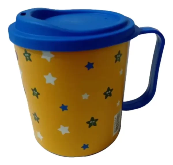 VASO CON PICO VERTEDOR - PPR SOLUTIONS ORIGINAL, + 3 años, plastico, vaso con asa, tapa con pico vertedor, medidas aproximadas: alto 9 cm - daimetro superior 8.5 cm, peso 30 grs.