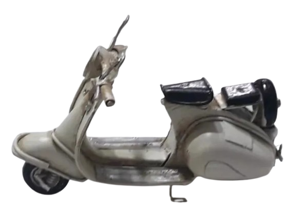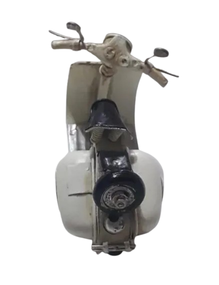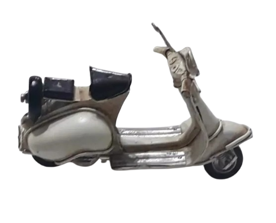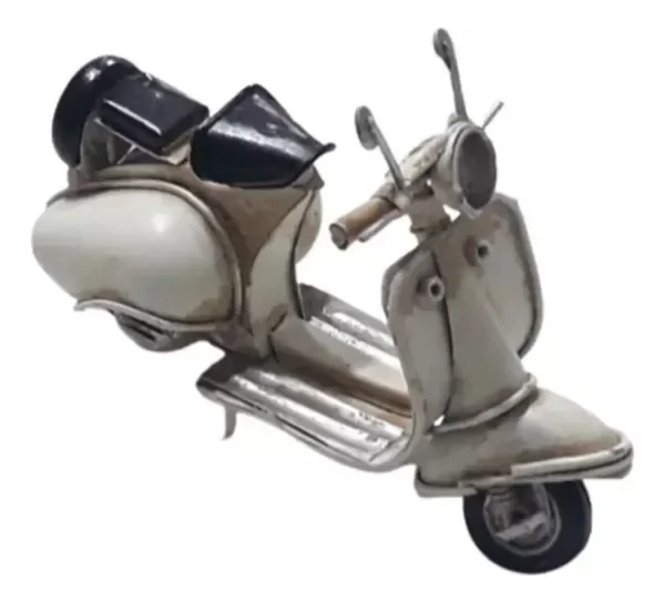 MOTO DE CHAPA - VESPA ( simil ) - ARTICULO 3020, movimiento de las 2 ruedas y el manubrio, medidas y peso aproximadas : largo 11 cm, ancho 5 cm, alto 7 cm, 50 grs.