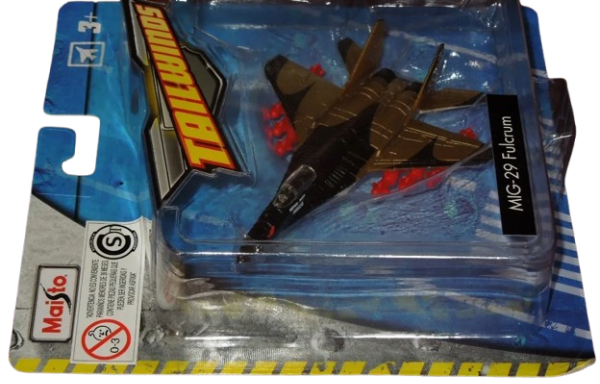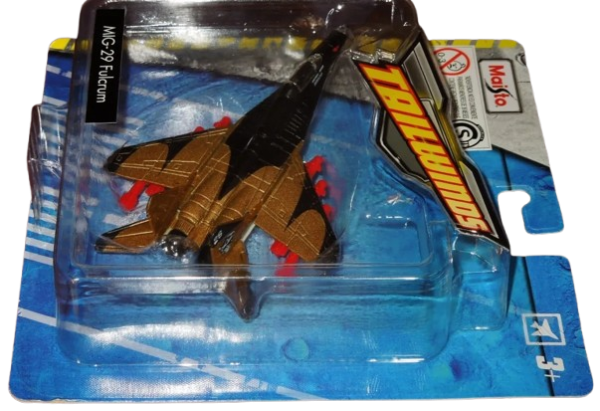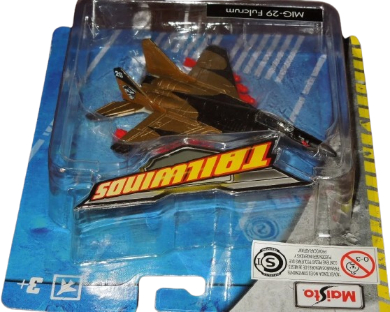 MIG 29 FULCRUM - MAISTO TAILWINDS - FRESH METAL - SIN BASE, plastico y metal, medidas aproximadas : largo 12 cm - envergadura 8,5 cm, 2016 (en el año de lanzamiento del vehiculo, ponemos lo que dice en el reverso del blister), medida del blister 17.5 x 16 x 5 cm, peso 150 grs.