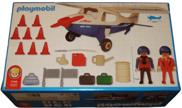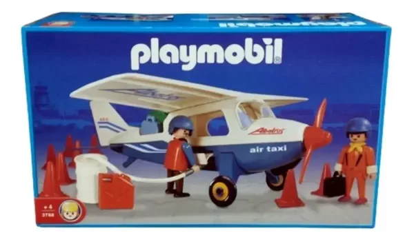 PLAYMOBIL ORIGINAL - N* 3788 - AVIONETA TAXI - FABRICADO POR ANTEX ANDINA S.A. - PARQUE INDUSTRIAL LA RIOJA - INDUSTRIA ARGENTINA - 2010 GEOBRA BRANDSTATTER ( lo que figura en la caja contenedora ), + 4 años, largo del vehiculo: 30 cm, ver contenido en foto, medida de la caja y peso : 34 x 13 x 20 cm, 500 grs.