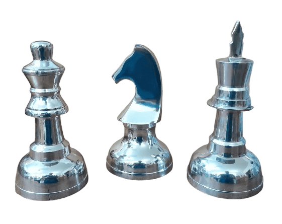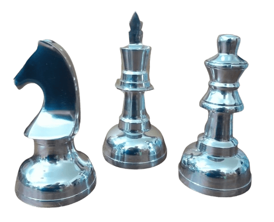 AJEDREZ SET x 3 - ALUMINO - N* U28367, figuras sin movimiento, medidas: diametro de la base 11.5 cm - la pieza mas alta 23 cm - peso 1.500 kg.