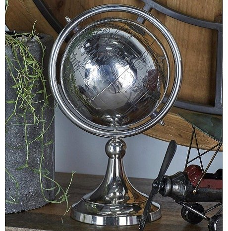 GLOBO TERRAQUEO - ALUMINO - N* U43479, globo terraqueo gira, medidas: diametro de la base 13 cm - alto 31 cm - diametro del aro 21 cm - peso 1.2 kg.