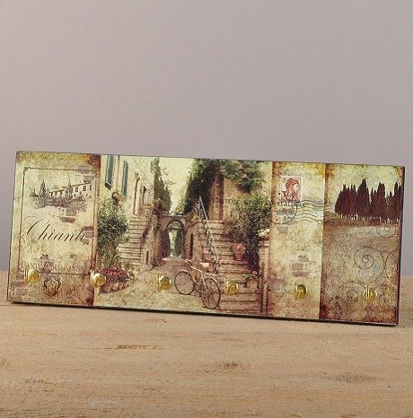 PORTA LLAVES - MADERA - N* PL6025, 6 ganchos de madera, 2 ganchos para colgar, medidas: largo 30 - ancho 11.5 - peso 300 cm.
