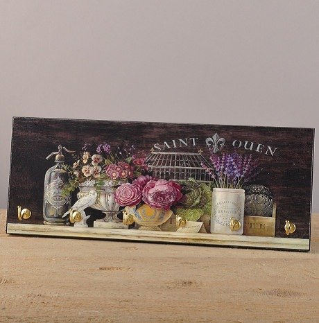 PORTA LLAVES - MADERA - N* PL6027, 6 ganchos de madera, 2 ganchos para colgar, medidas: largo 30 - ancho 11.5 - peso 300 cm.