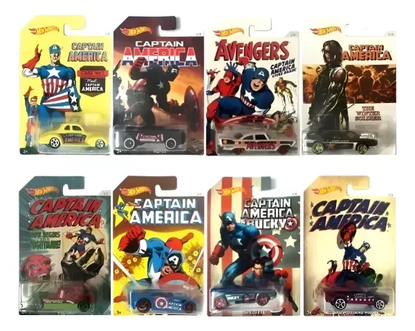HOT WHEELS ORIGINAL - SAGA COMPLETA DEL CAPITAN AMERICA X 8 MODELOS, + 3 años, año 2015 (ponemos lo que dice en el reverso del blister), el largo aproximado de los vehiculos, va entre: 6 - 7 cm, blister cerrado.